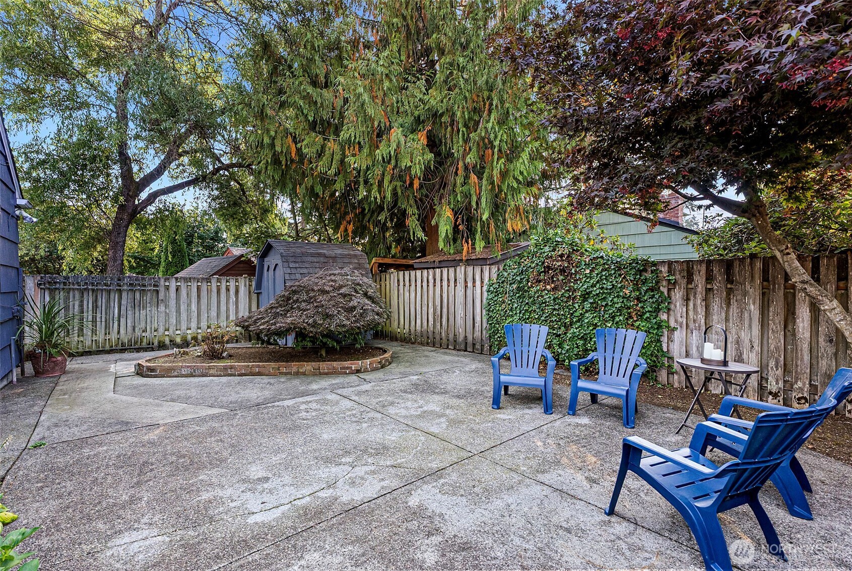 Off the back of the home, an expansive patio promises low-maintenance outdoor space and a sense of seclusion while you enjoy the fresh air. There are still many opportunities to put your green thumb to work, with gardening areas by the patio, and a stunning front yard replete with established greenery. Set up your dream outdoor living and dining space out on the patio—imagine colorful outdoor rugs, garden pots overflowing with flowers, comfy outdoor furniture, and a string of firefly lights overhead. Whether you’re sipping your morning coffee or hosting a lively BBQ, this lovely setting is an absolute joy!